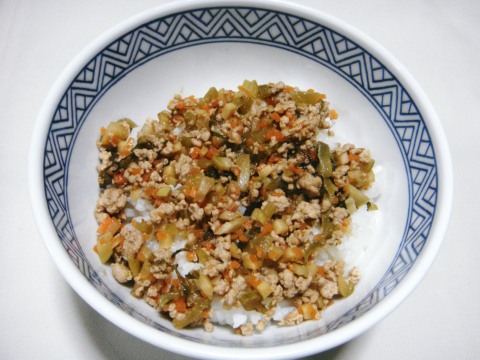 ザーサイそぼろ丼。例の奴の余り物である。