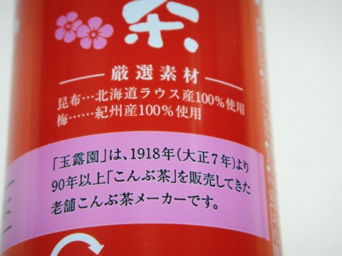 厳選素材を使っているらしい。昆布は北海道ラウス産、梅は紀州産。