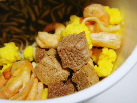 貧乏な我が家にとってカップヌードルは贅沢品である。いつの間にか160円越えてるし。しばらく食べることのないうちに、いつの間にやら具も変わっていたようだ。謎の整形肉が「コロ・チャー」なるものに変わっていた。コロコロしたチャーシューという意味なのだろう。