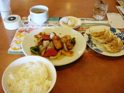 この時は「海老と鶏肉のXO醤炒め」と「餃子」、そして「ご飯セット」というのを注文してみた。