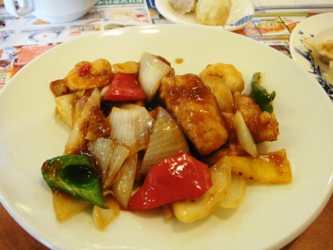 メインの「海老と鶏肉のXO醤炒め」、628円。店内にはまだそれほど客が入っているわけでもなく、店員が忙しくて手が回らないなんてことはなさそうだったのだが、やたらとぬるいものが出てきた。調理も厨房でちゃんと炒めているのかかなり疑問。 XO醤の味もあまりしないなぁ。