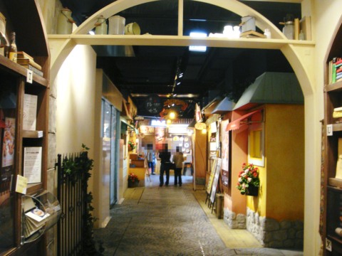 基本的にフードコート。通路がうねうねしていてあちこちに店が出ている。お店によって専用のテーブルがあったり無かったり。テーブルがないお店の場合、品を受け取って、その辺のテーブルで食べることになる。