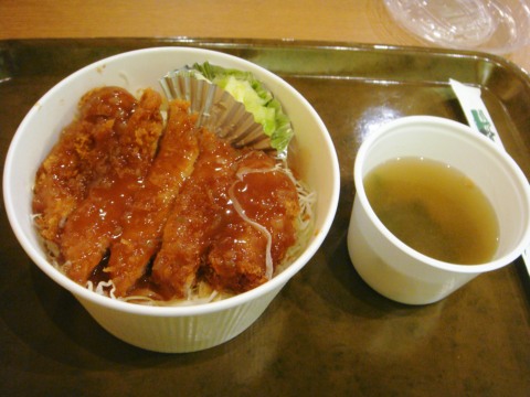 こちらのお店、受付の手際があまりよくなかった。注文の品が厨房から上がってきてもなかなか気付かないし。で、かなり待たされてようやく品をゲット。この店自体に食べるところは無いので、トレイを受け取ってフードコートのテーブルへ。