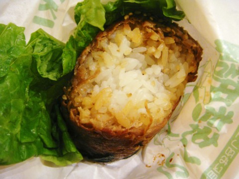食べてみると、びっくりするほど肉が薄い。匠の技で巻いている感じだ。タレの味付けは醤油味強めで甘みはほとんど無し。肉が薄いのを補うためか、タレの味がかなりきついので、肉の味というよりはタレの味でおにぎりを食べているような感じであった。原価率はかなり低そう。ブームのおかげで相当儲かっているのではないかと思った。