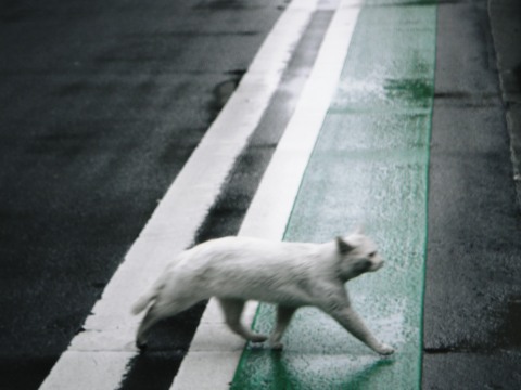 中華街から出て道を歩いていたら、白猫が目の前を横切る。