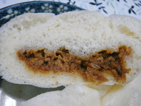 中身はこんな感じ。具はまあまあそんな感じかな、という味。皮は膨らせすぎてスッカスカ。